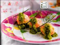 Polpette di salmone e avocado con pesto di basilico al limone